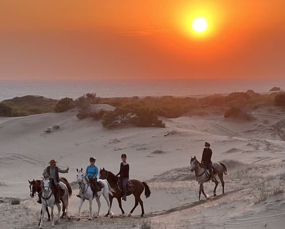 Venture through enchanting golden sand dunes as your horse gracefully navigates the terrain. The breathtaking sights of the majestic Atlantic unfold before your eyes, creating moments of awe and tranquility. Capture the beauty of the landscape and the connection with your equine companion.